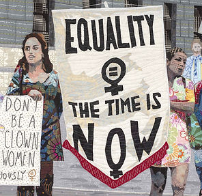 Learn how to transform an image into an appliqued art quilt. I will show you the steps from the selection of a good photo to the creation and scaling of templates, from choosing fabrics to the stitching of “paper dolls” and contextual elements, and lastly how to assemble these parts on a larger background.